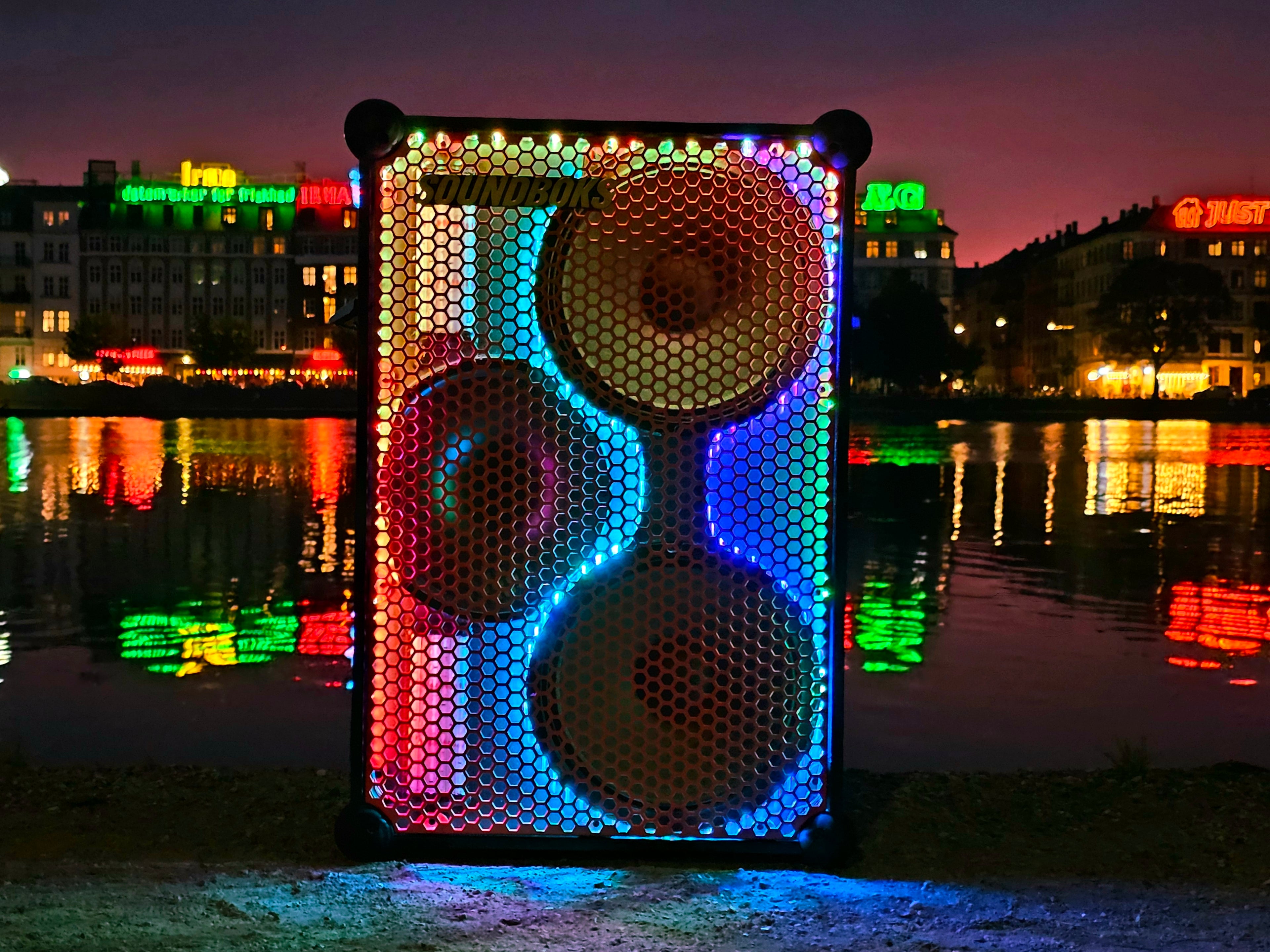 Alle fester har brug for vanvittig musik, cool lys og festglade mennesker. Her hos Tunemaster vil vi gerne sørge for, at du altid får den fedeste fest overhovedet muligt. Derfor tog vi den vildeste festhøjttaler "Soundboks gen. 1-4 og GO" og gav den en festmakeover. Nu kan du danse til dine favoritmusiknumre i takt med det farverige diskotekslys, som kontrolleres af musikken og via en app. Når du har musik og lys, er det næsten umuligt ikke at have den bedste feststemning.
